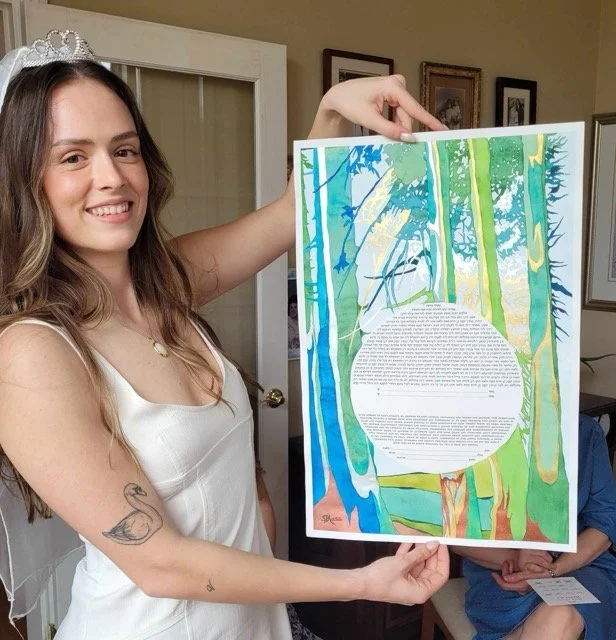In preparation for their day they asked me to paint the Ketubah (traditional Jewish marriage contract). Once my printer had placed the text where I wanted it, the rest was up to me.